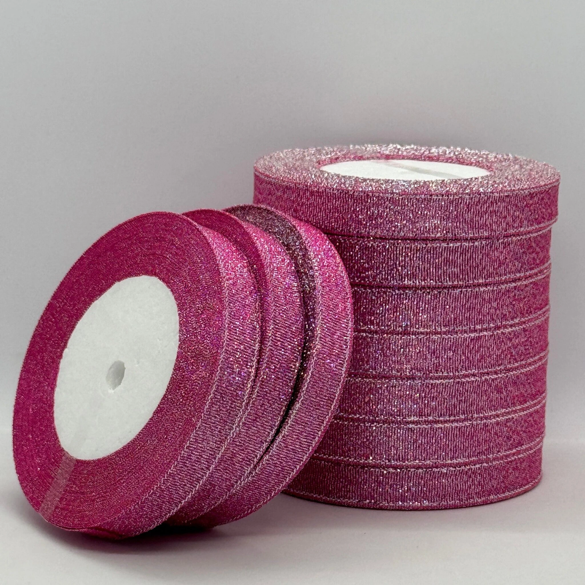 Тасьма парчева 1,2 см (10*25 ярдів/22,75 м.), 89 неон рожевий + срібло