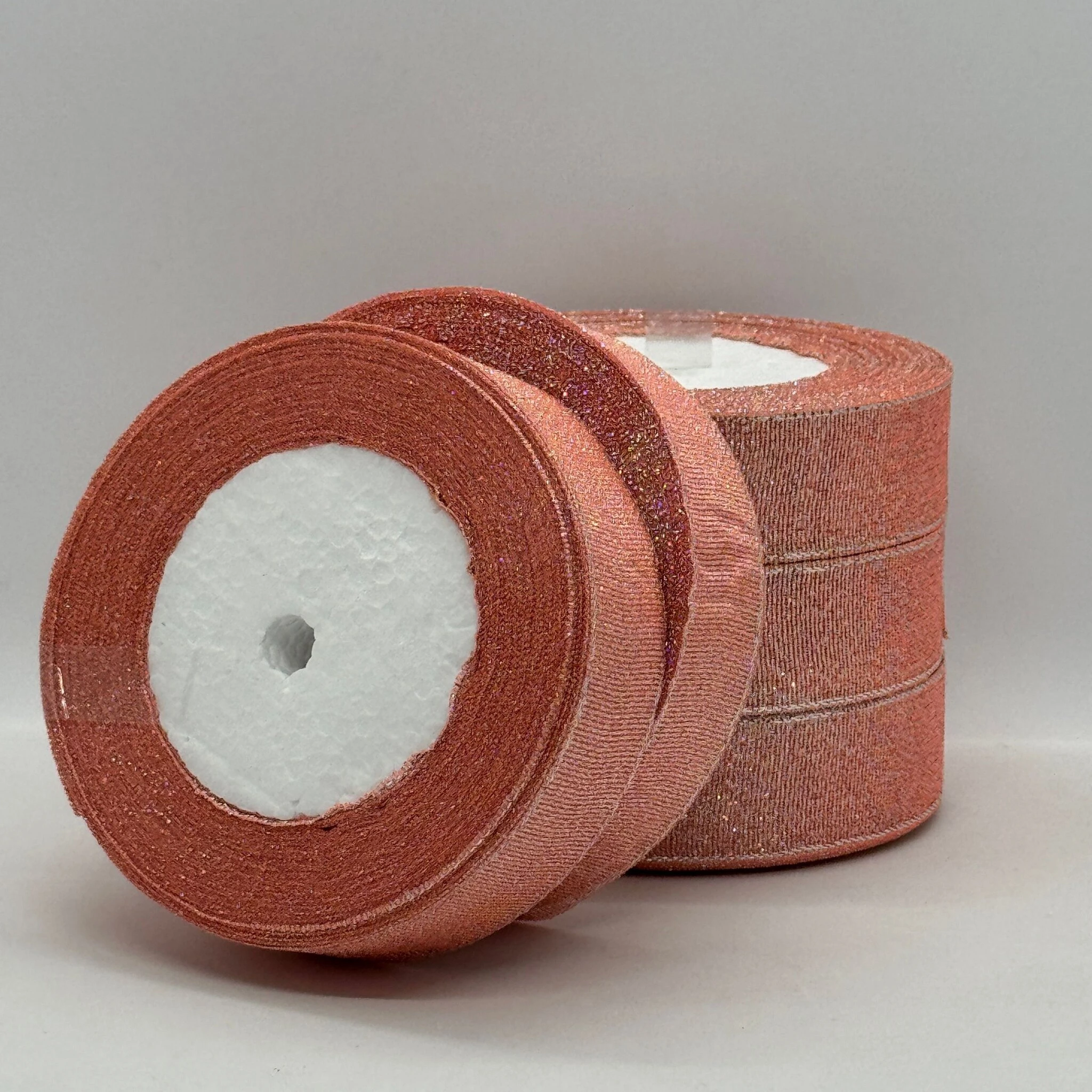 Тасьма парчева 2,5 см (5*25 ярдів/22,75 м.), 109 блідно рожевий + срібло