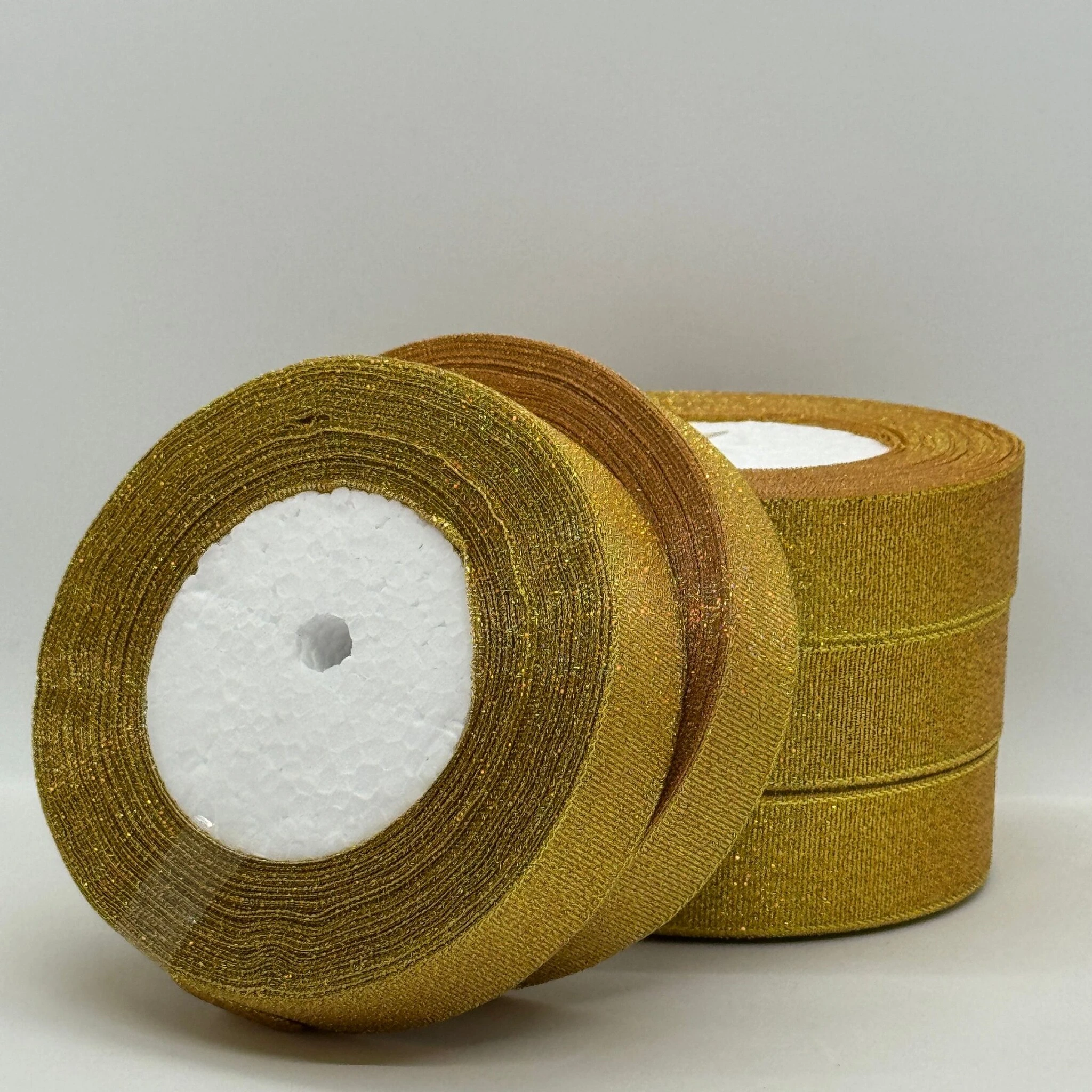 Тасьма парчева 2,5 см (5*25 ярдів/22,75 м.), 16 жовтий + золото