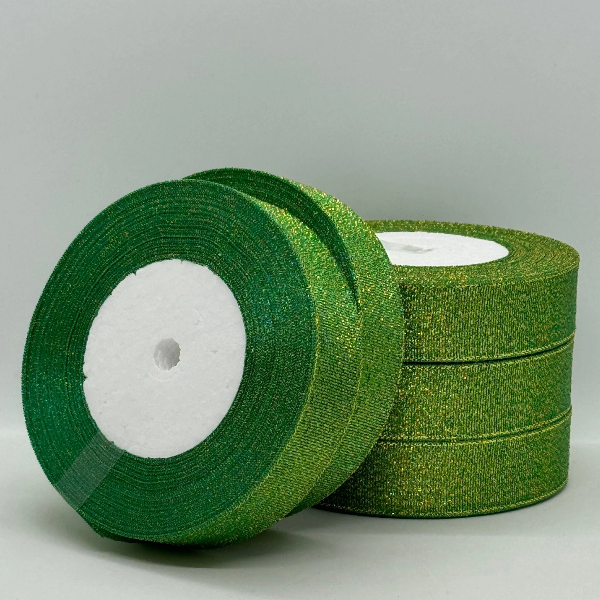 Тасьма парчева 2,5 см (5*25 ярдів/22,75 м.), 19 зелений + золото