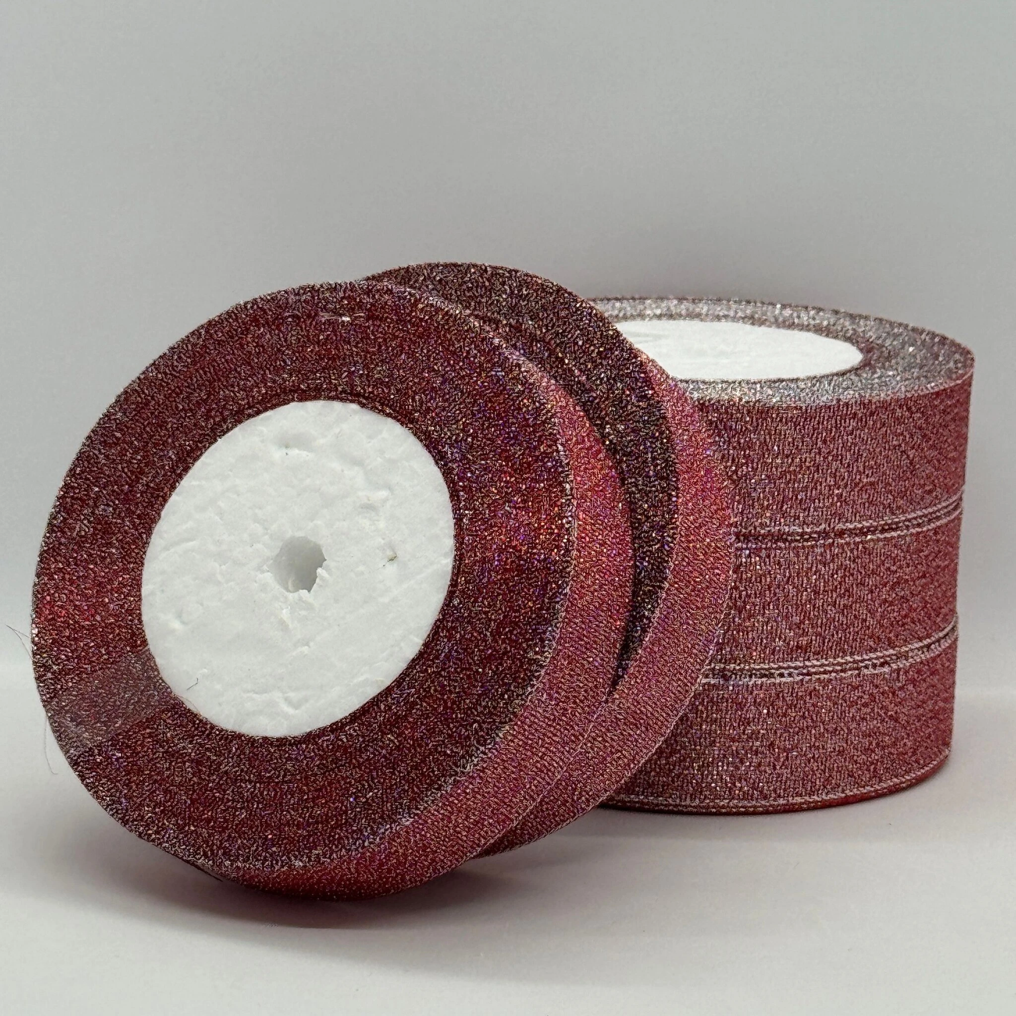 Тасьма парчева 2,5 см (5*25 ярдів/22,75 м.), 65 червоний + срібло