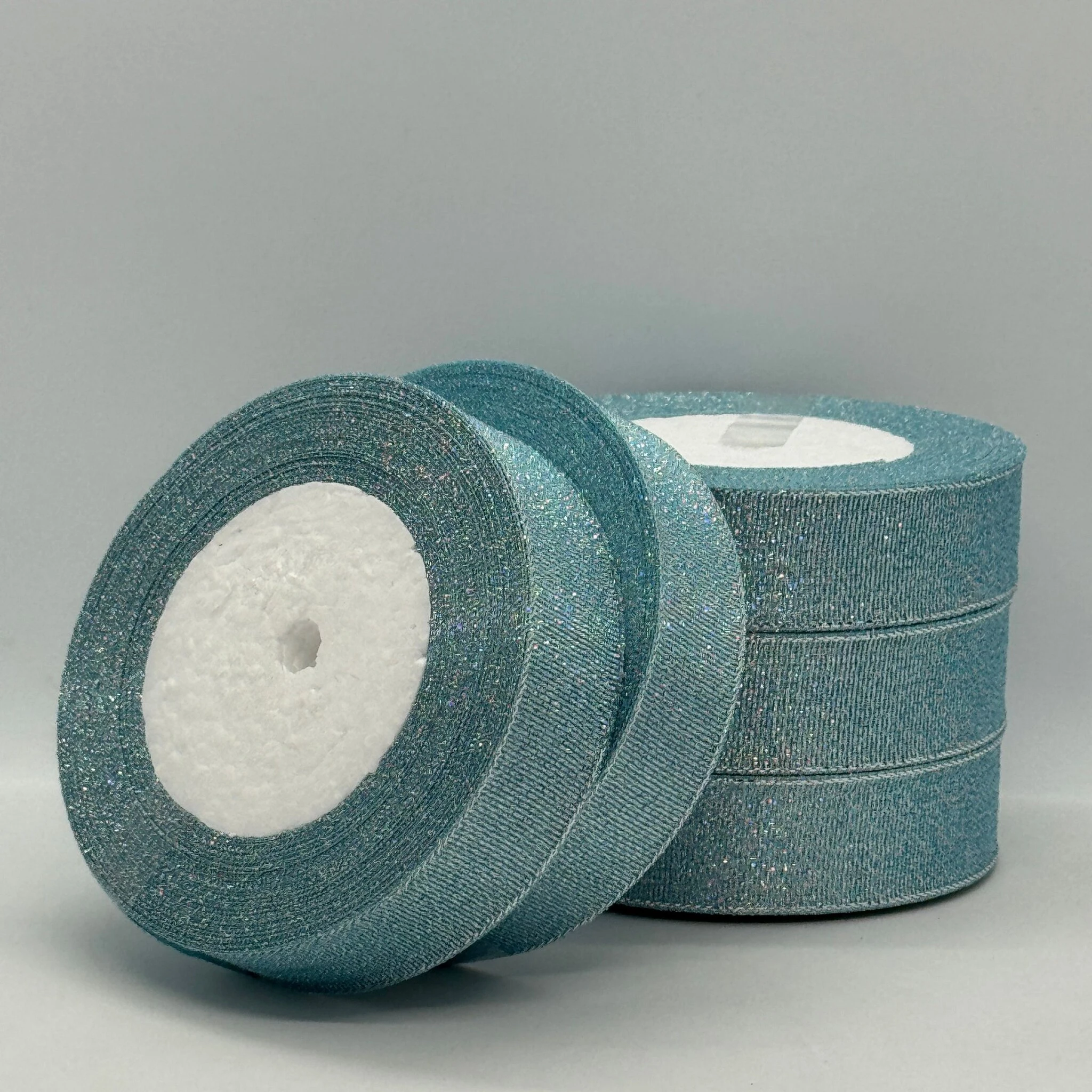 Тасьма парчева 2,5 см (5*25 ярдів/22,75 м.), 70 блакитний + срібло