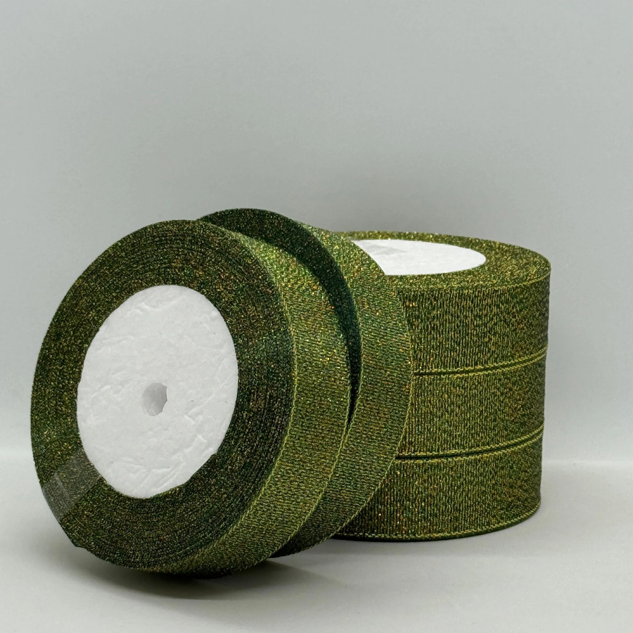 Тасьма парчева 2,5 см (5*25 ярдів/22,75 м.), 77 темний зелений + золото