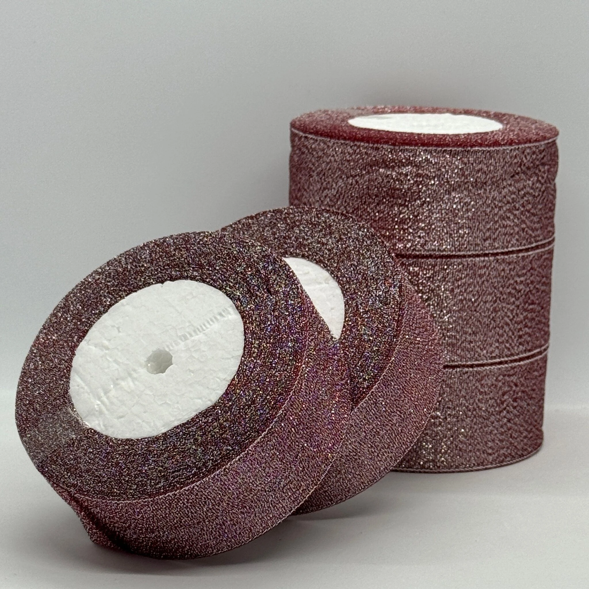 Тасьма парчева 4 см (5*25 ярдів/ 22,75 м.), 28 баклажан + срібло