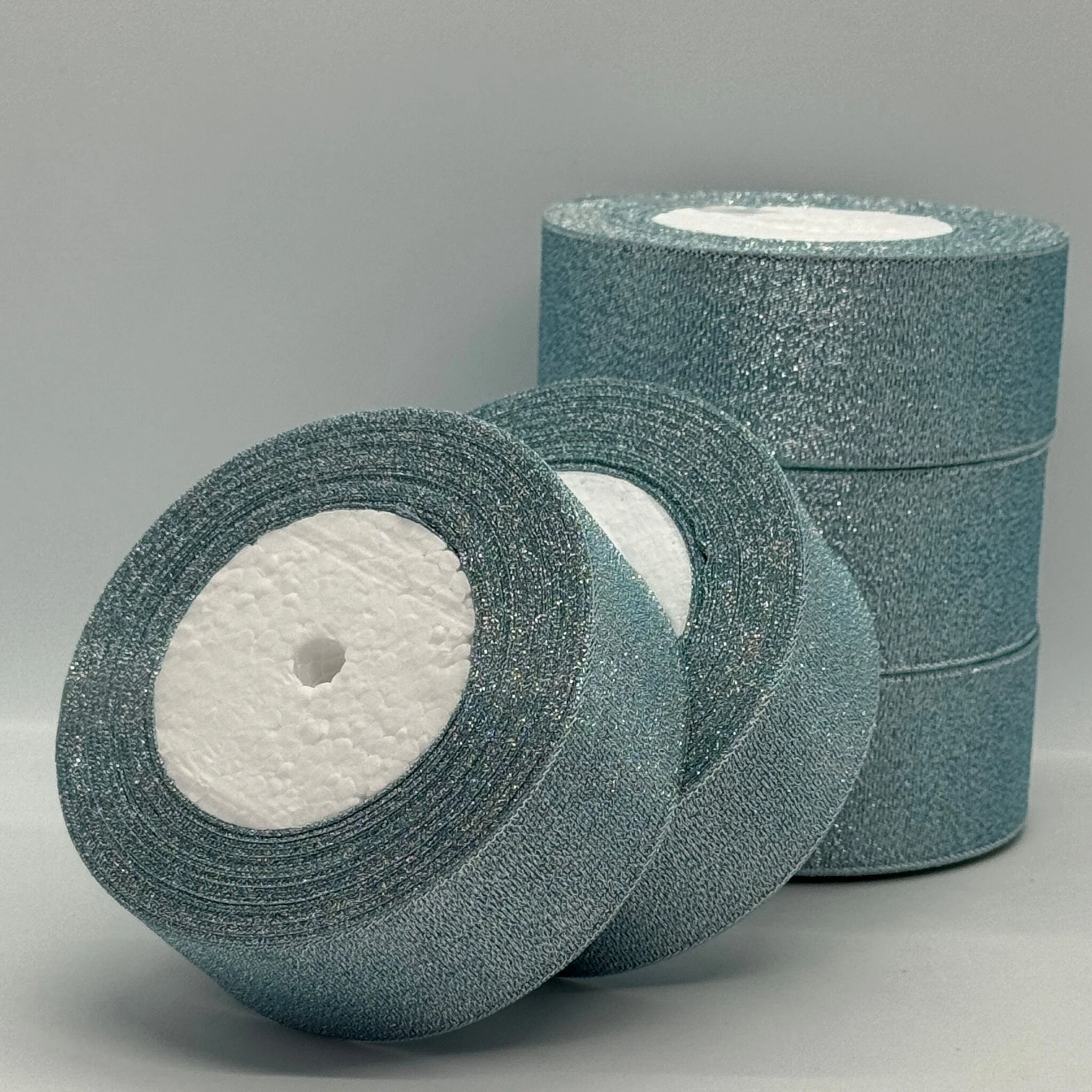 Тасьма парчева 4 см (5*25 ярдів/ 22,75 м.), 70 блакитний + срібло