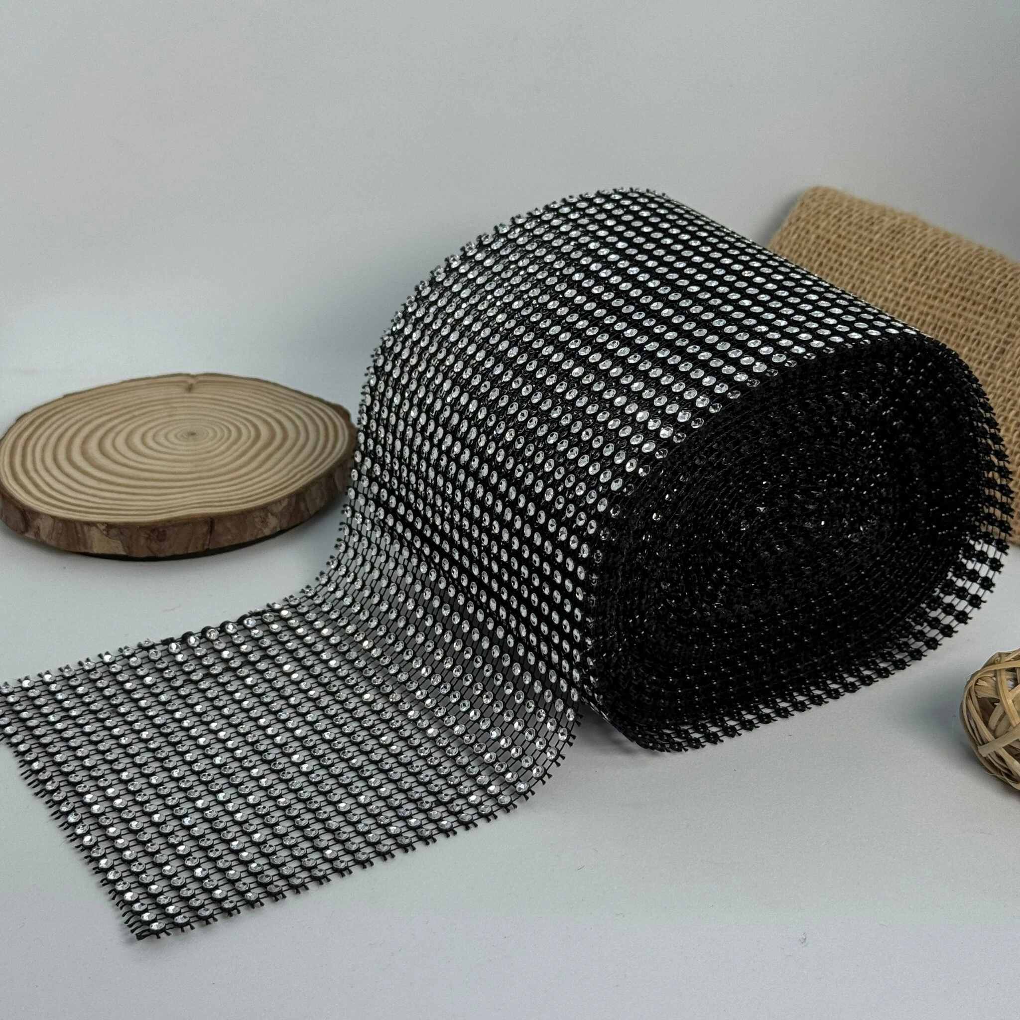 Тасьма пластикова імітація 24 ряда 12 см (10 ярдів/9,14 м.), чорний + срібло