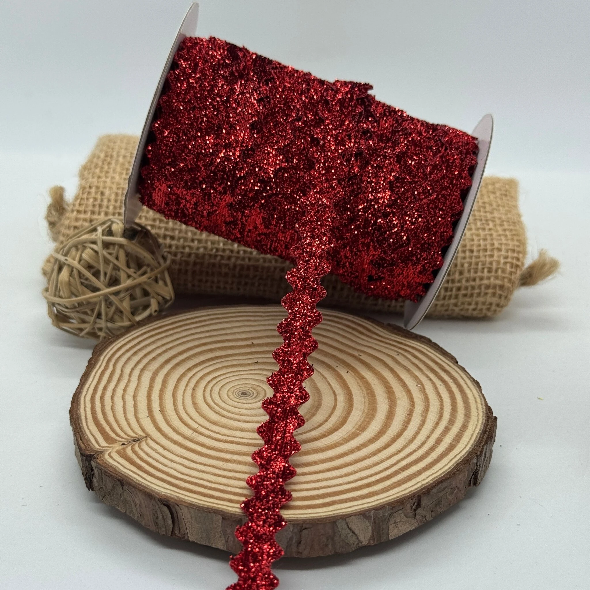 Стрічка вюнчик оксамитовий парча люрекс 1 см (25 ярдів/22,75 м.), 16 червоний