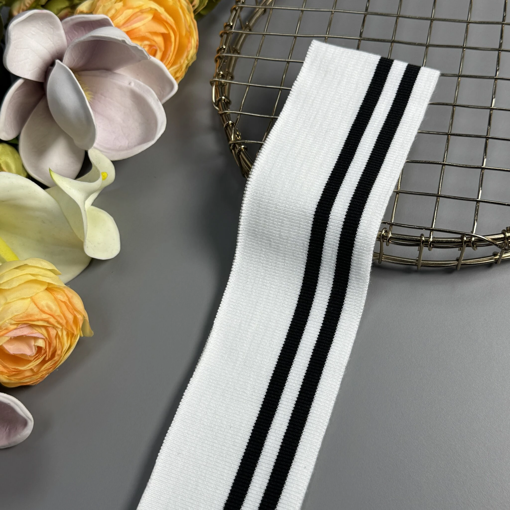 Вязаный трикотажный хлопковый (6.5 см*120 см), белый+черный