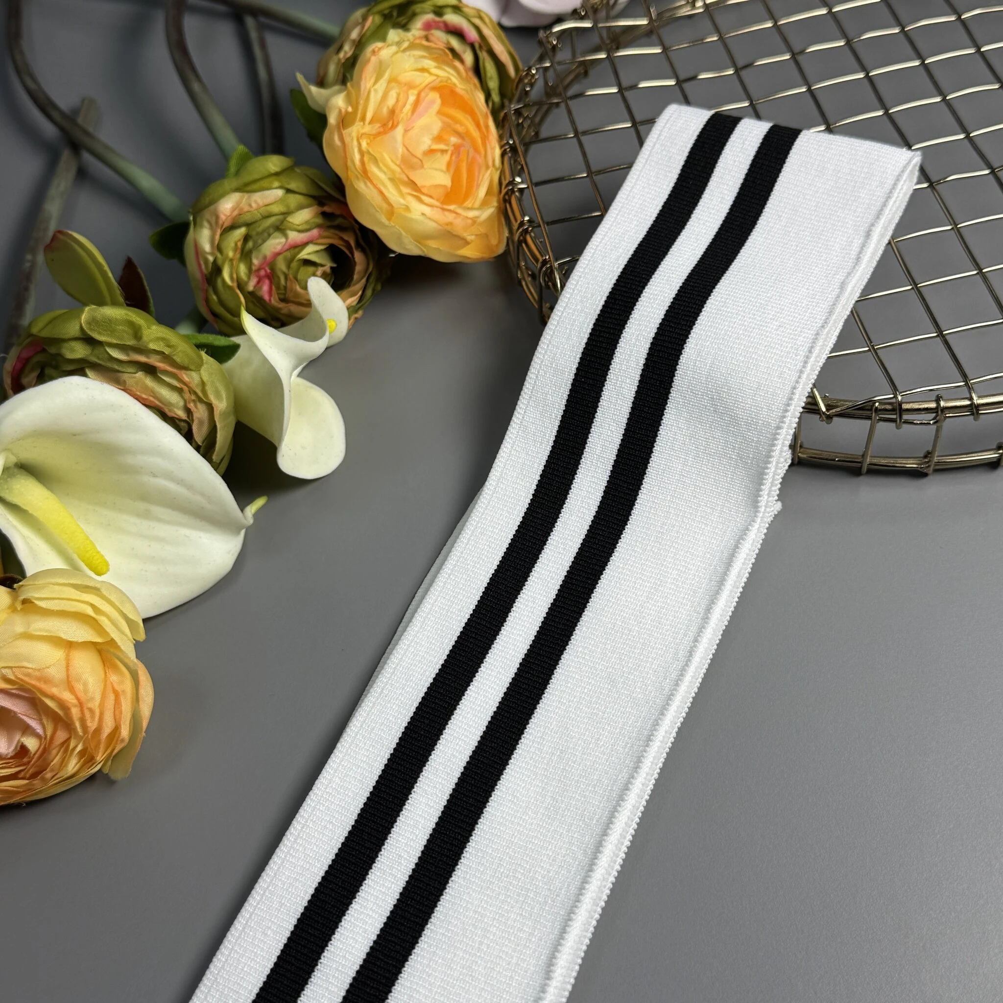 Вязанный трикотажный полиэстровый (6.5 см*120 см), белый+чёрный две полосы