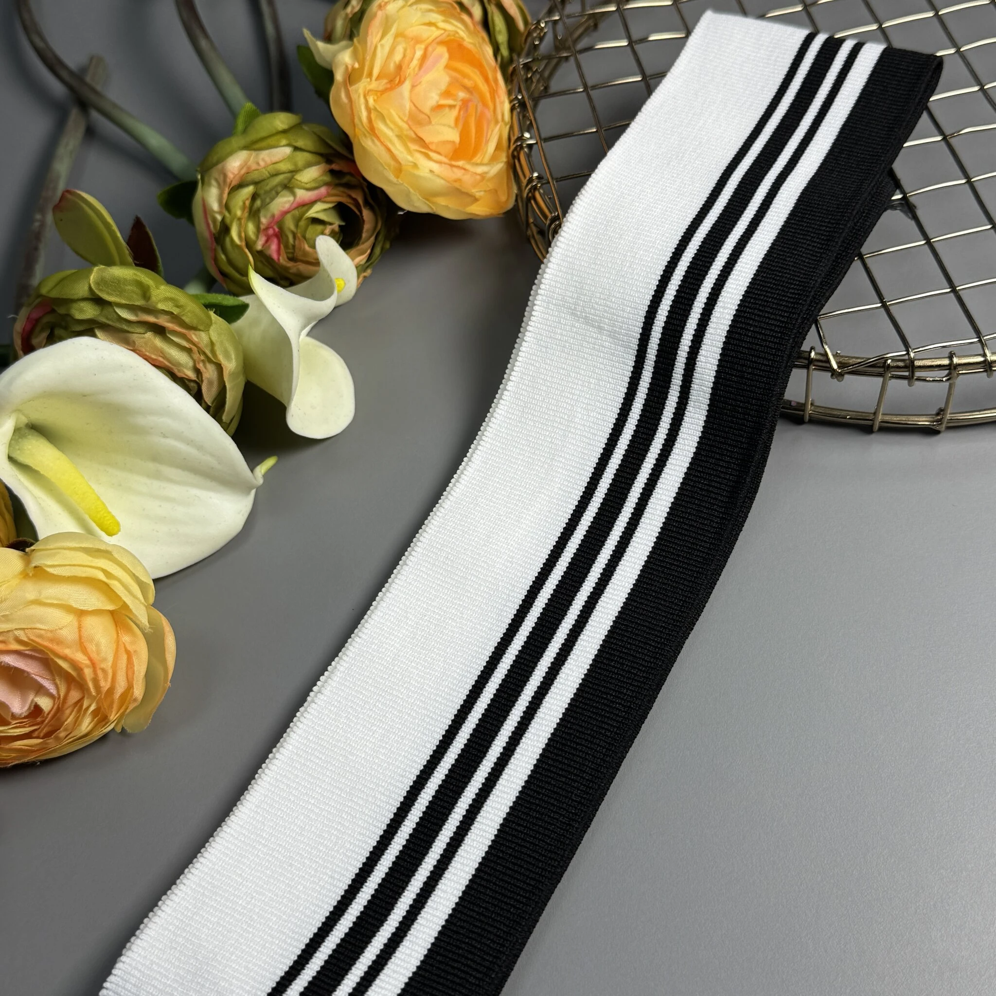 Вязанный трикотажный полиэстровый (6.5 см*120 см), белый+чёрный полосы