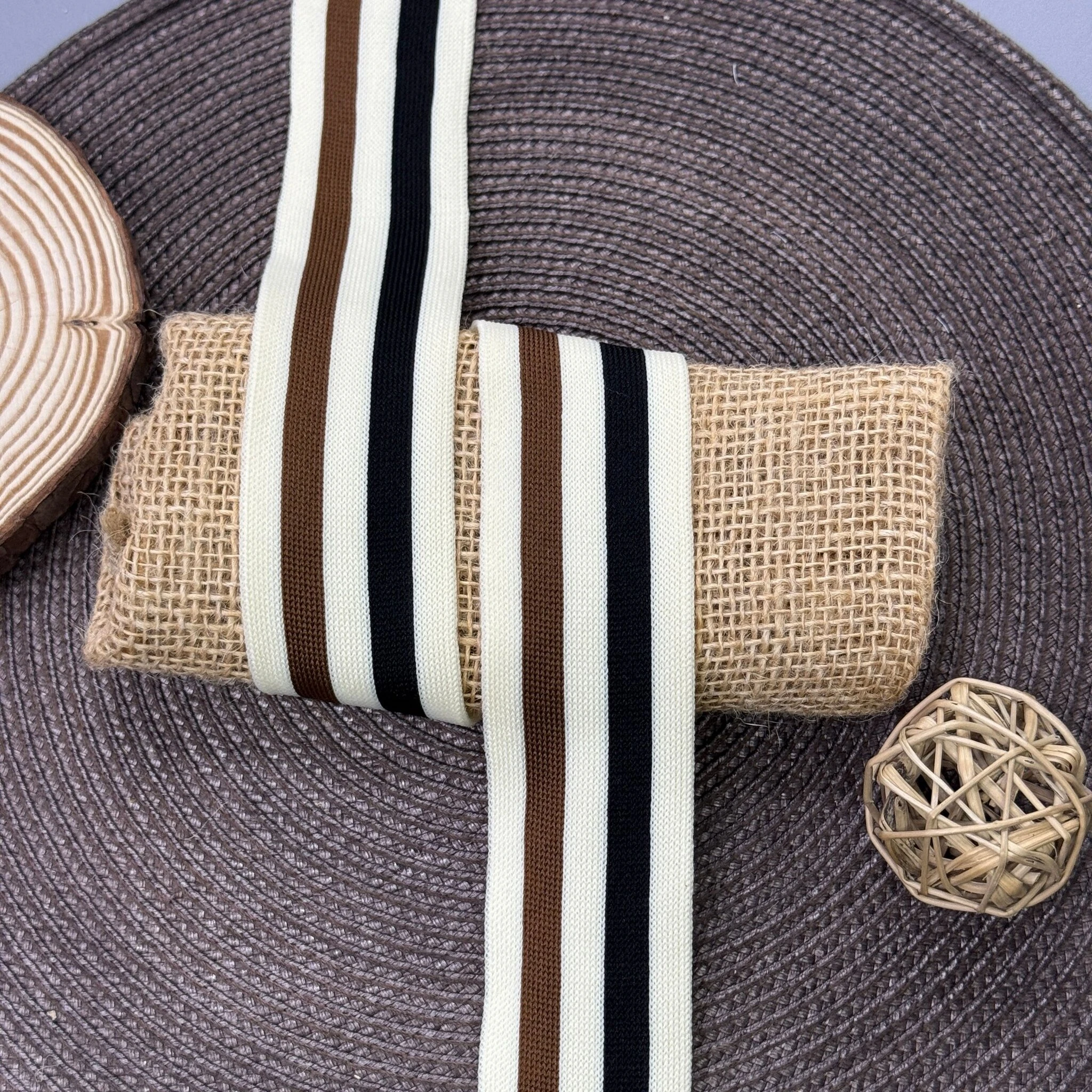 Лампас трикотажный D#8 4 см (50 м), молочный+коричневый