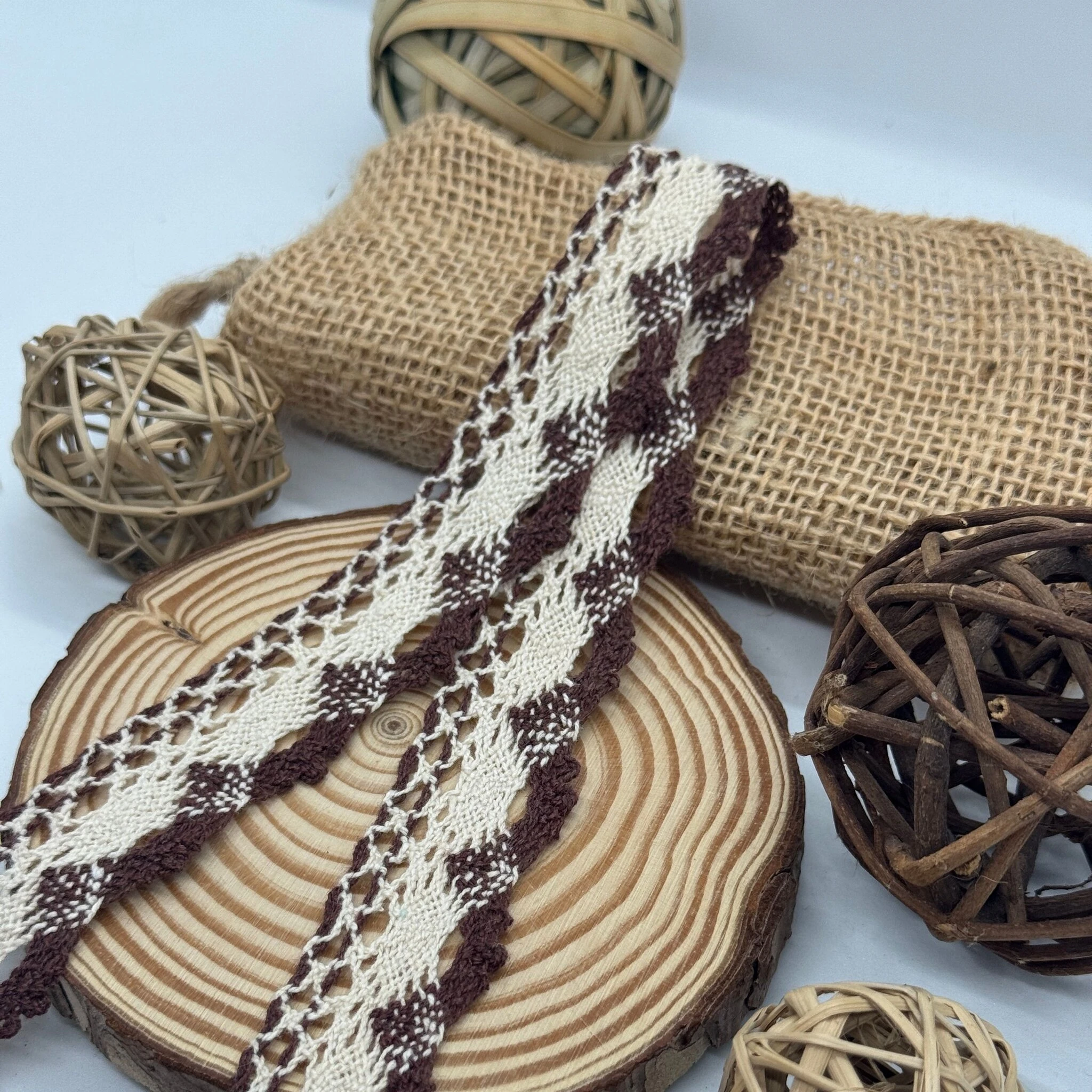 Макраме кружево 5465 3 см. (300 ярдов/274,3 м.), коричневый + молочный