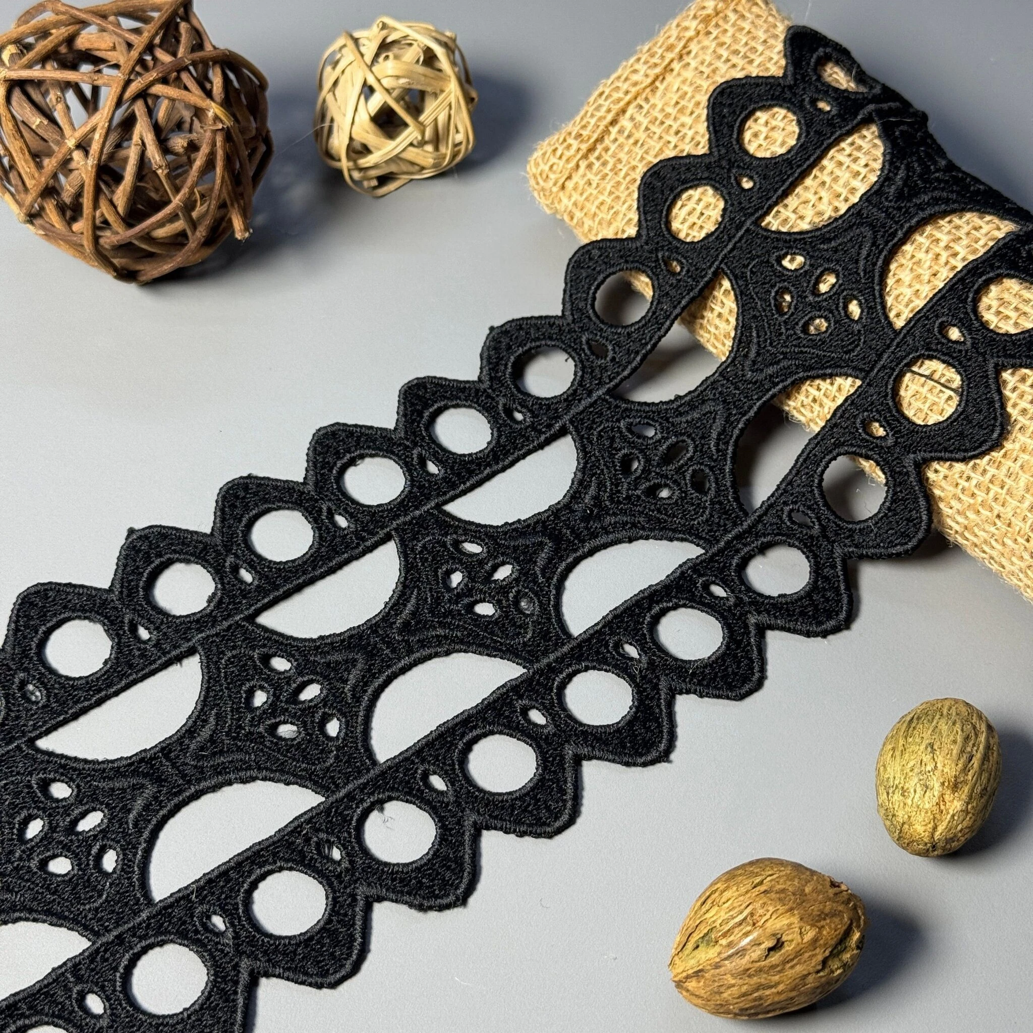 Кружево полиэстер – декоративный материал из синтетического волокна, который отличается высокой износостойкостью и стабильностью формы. Полиэстер не склонен к деформациям, не растягивается и не мнется, что делает кружево подходящим для частого использования.