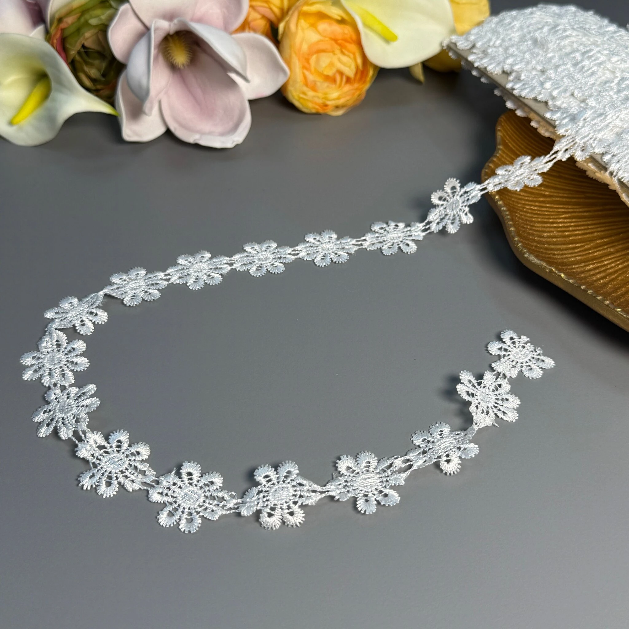 Кружево полиэстер – декоративный материал из синтетического волокна, который отличается высокой износостойкостью и стабильностью формы. Полиэстер не склонен к деформациям, не растягивается и не мнется, что делает кружево пригодным для частого использования.
