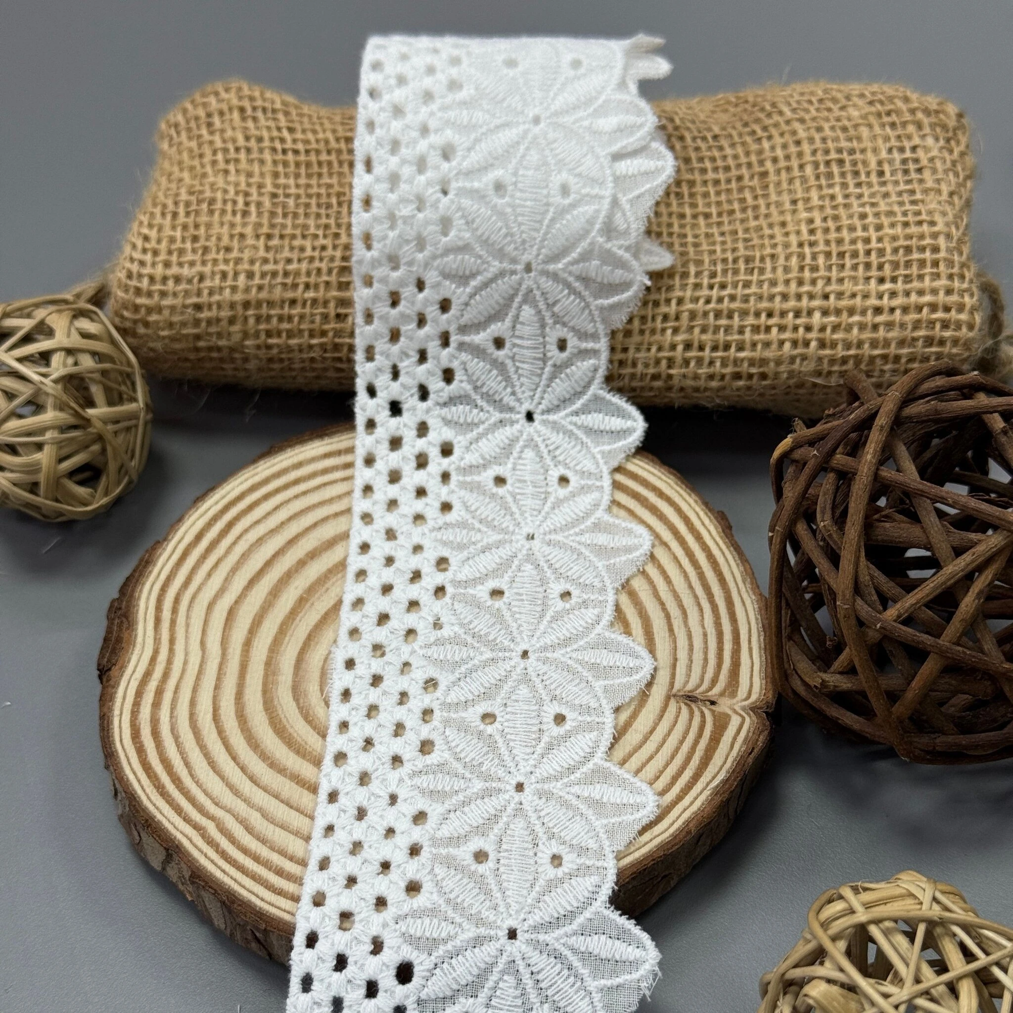 Тесьма - декоративная тесьма с вышитым узором и перфорациями, которая используется для отделки одежды и текстильных изделий. Изготавливается преимущественно из хлопка или смесовых тканей, благодаря чему сочетает натуральность, мягкость и прочность.