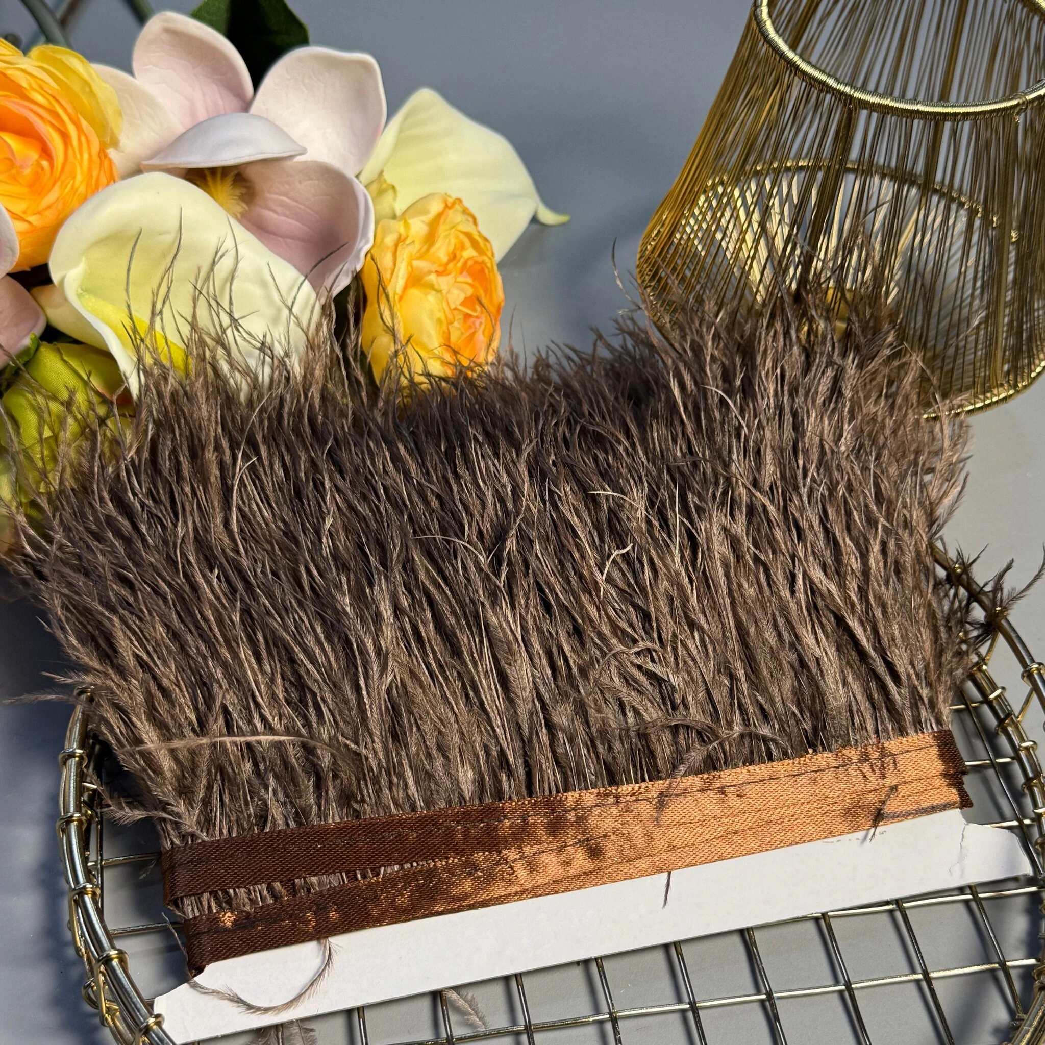Перья на тесьме 7-10 см (10 метров), коричневый
