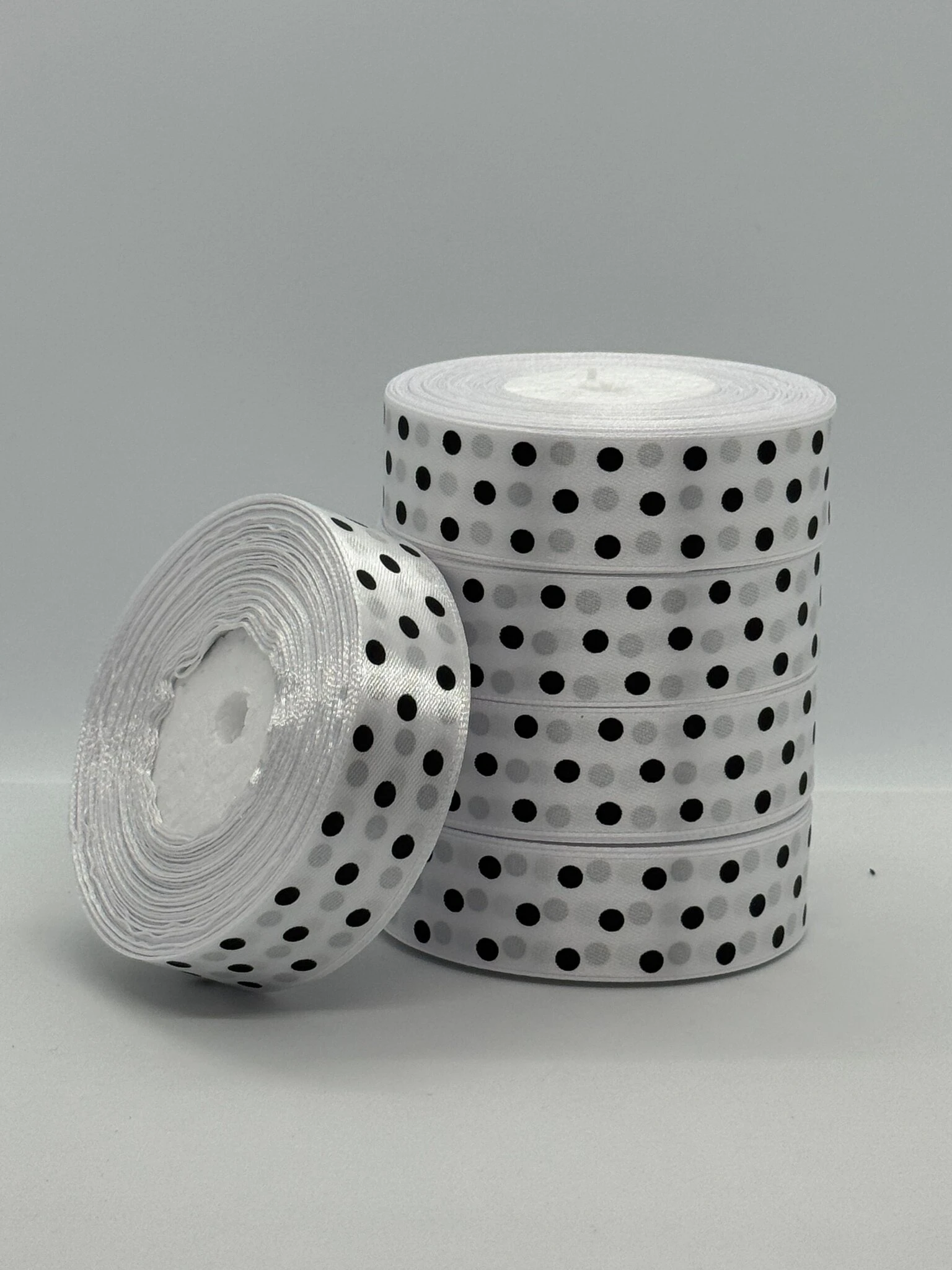 Лента атласная в горошек 2.5 см (5*36 ярдов), белый + черный