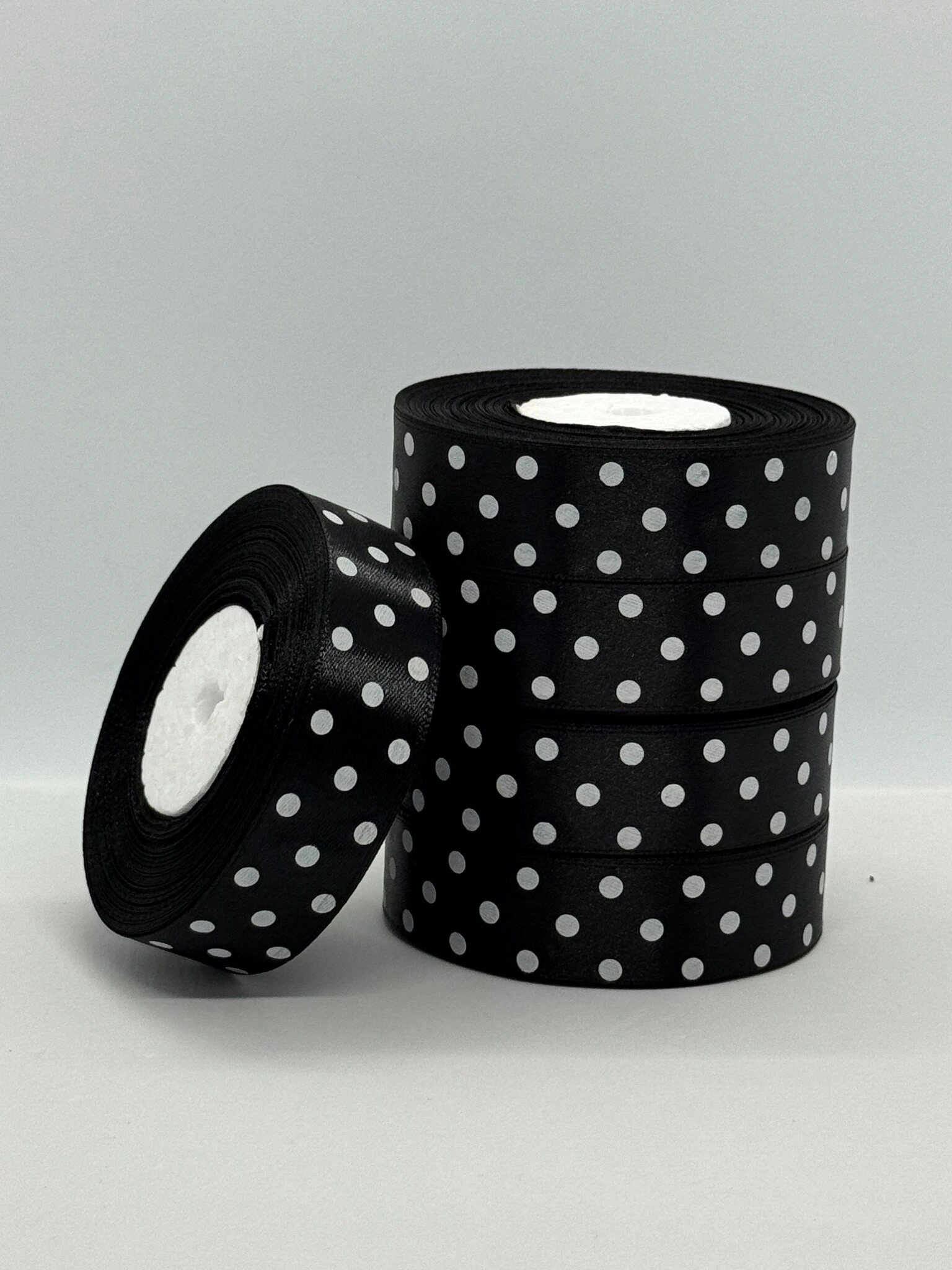 Лента атласная в горошек 2.5 см (5*36 ярдов), 39 черный + белый
