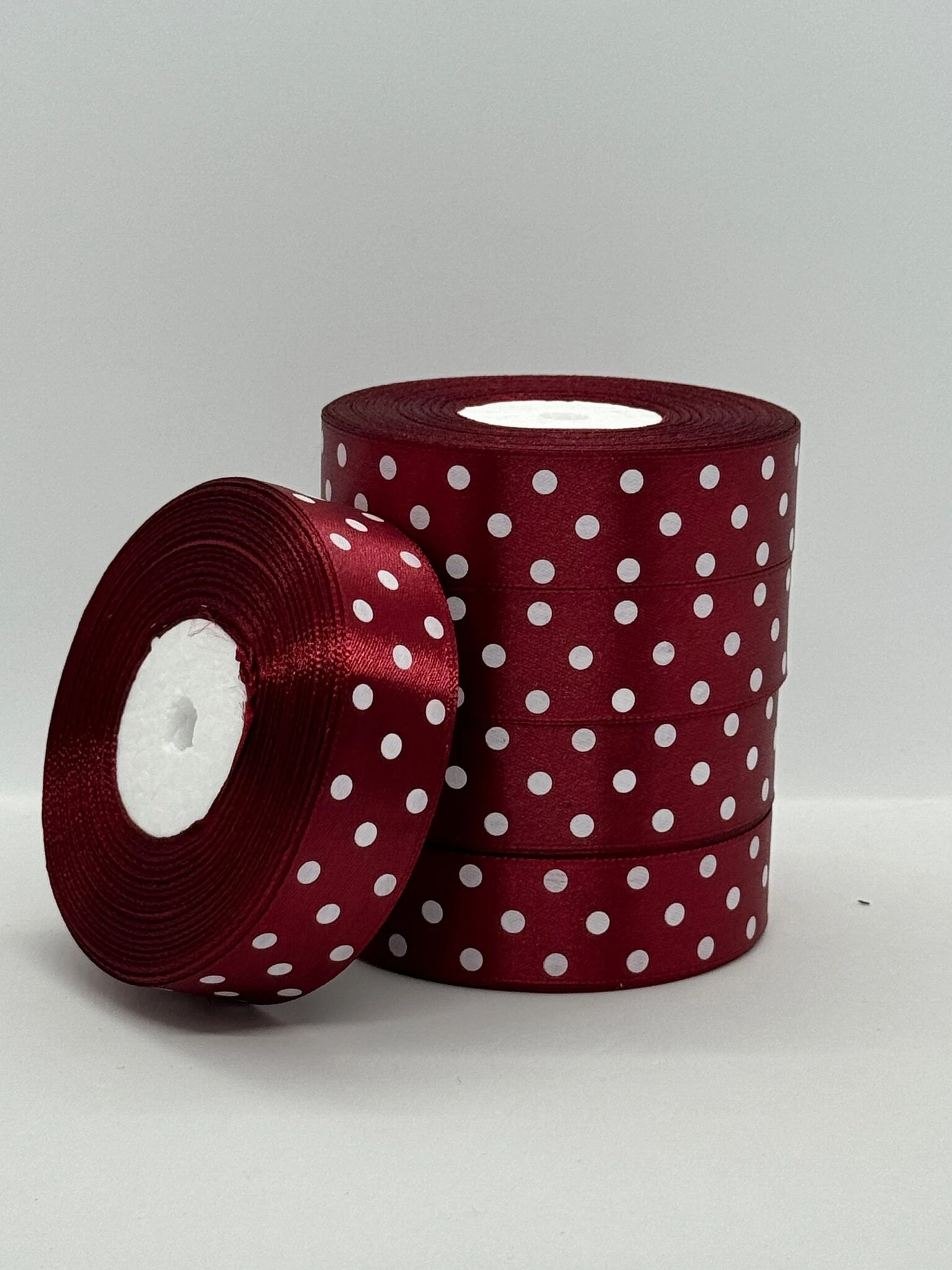 Лента атласная в горошек 2.5 см (5*36 ярдов), 48 бордовый + белый