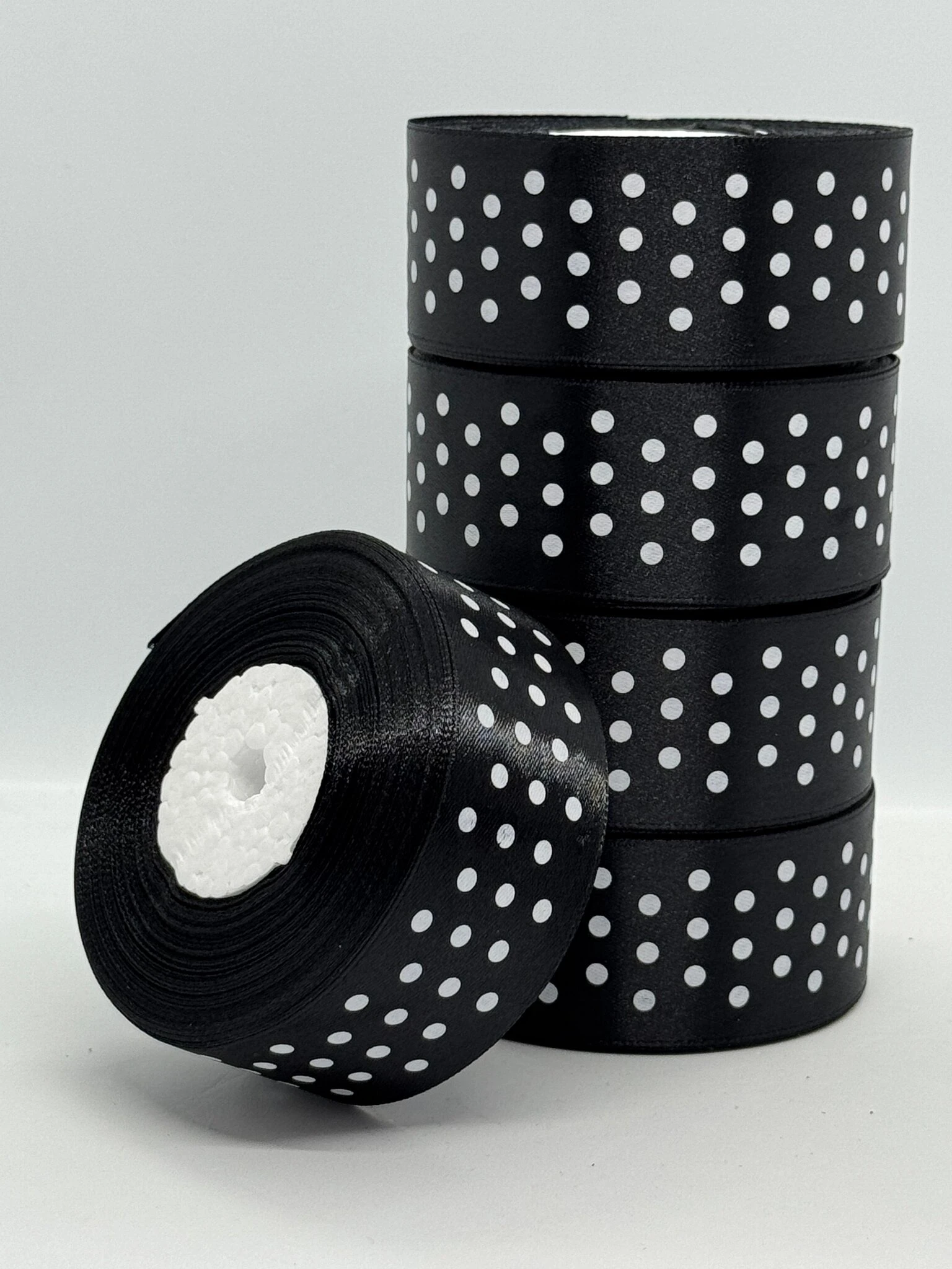 Лента атласная в горошек 4 см (5*36 ярдов), 39 чёрный + белый