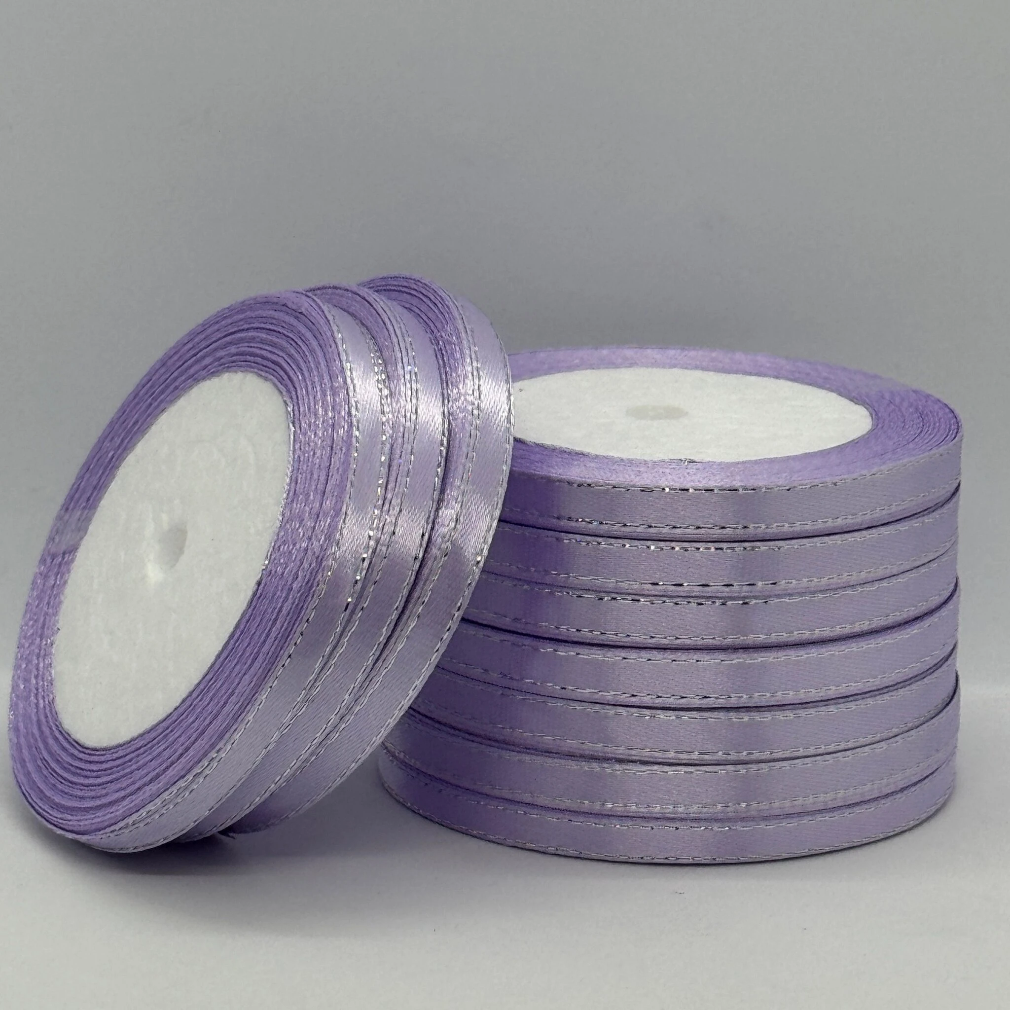 Лента атласная с люрекс 0,6 см+серебро (10*25 ярдов), 44 светло-фиолетовый