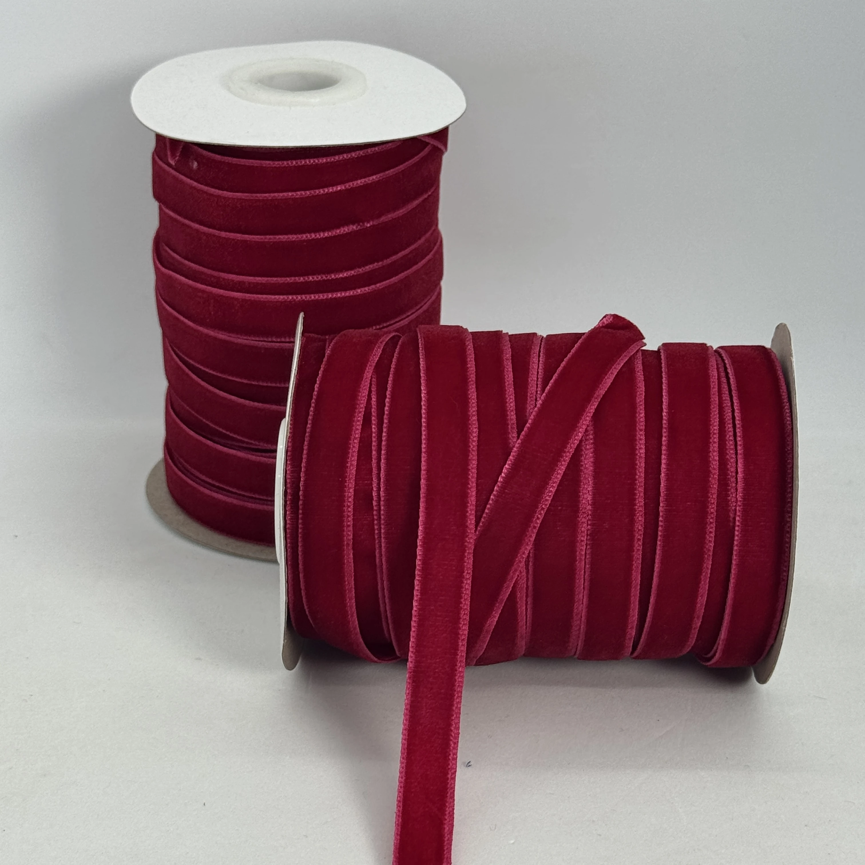 Лента бархат 1 см (25 ярдов/22,75 м.), 81 темный коралловый