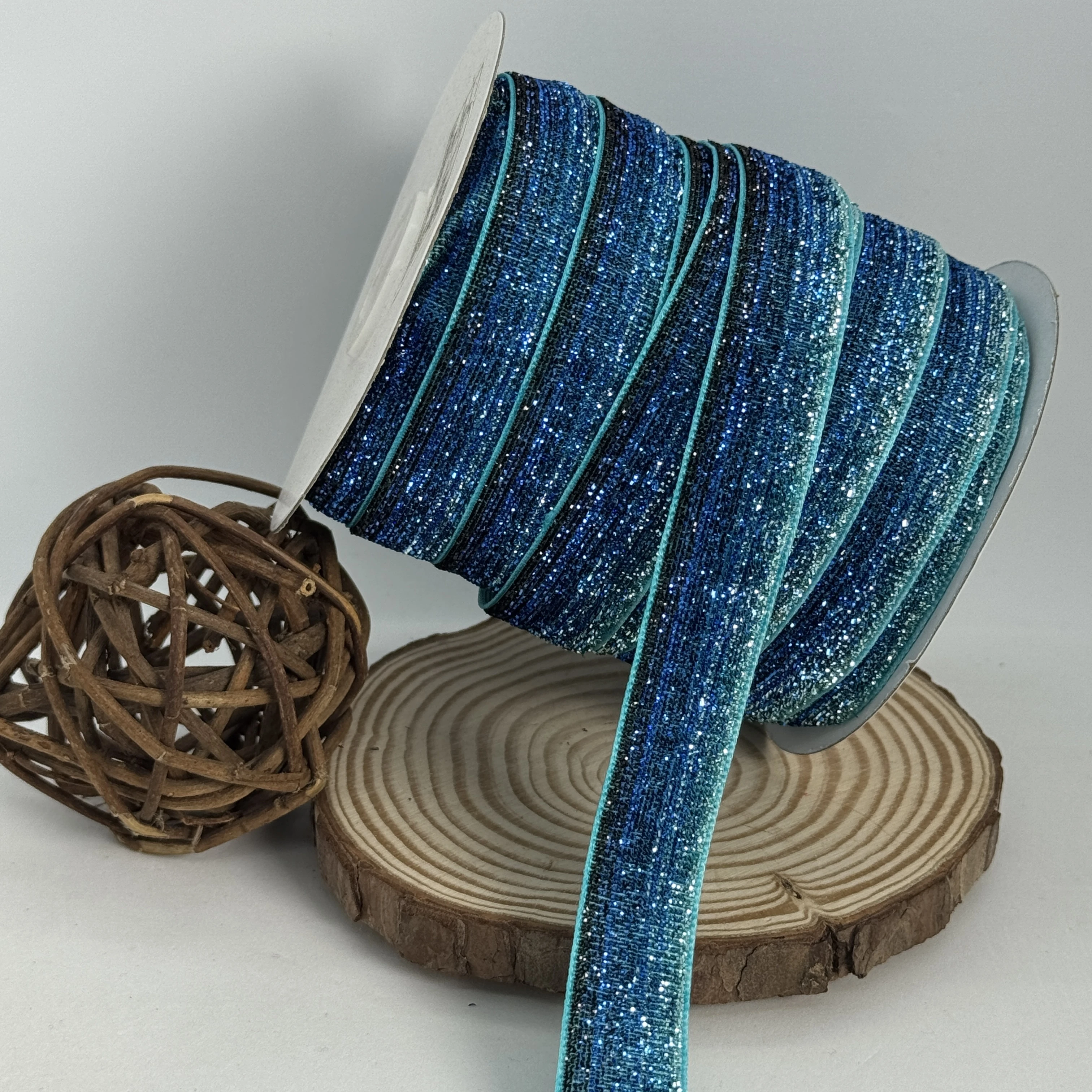 Лента бархатная парча люрекс 2 см (25 ярдов/22,75 м.), 36 синий + бирюзовый