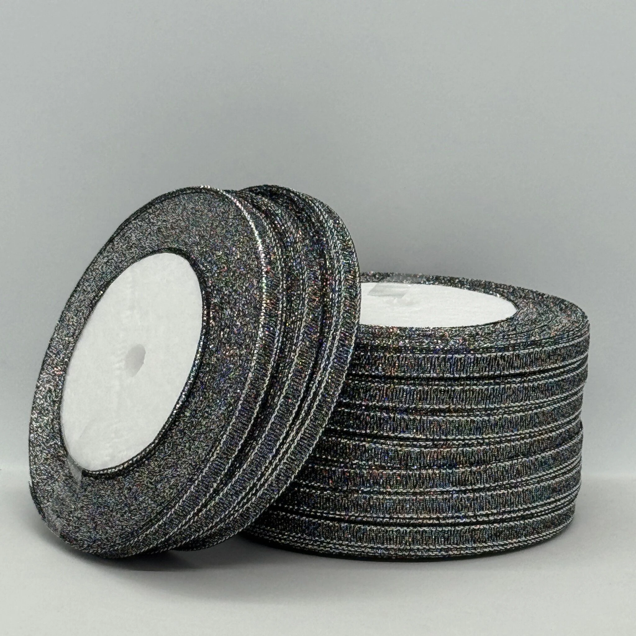 Лента парчовая 0,6 см (10*25 ярдов/22,75 м.), 111 чёрный +серебро